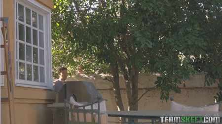 Ну, тут, как говорится, один сплошной бартер, не прикрытый никакими моральными нормами. Сисястая брюнетка отдыхает в шезлонге, грея булки, но ее процесс релаксации прерывает парень, оценивающе одобряя размер ее бюста навыкат - одежду она предусмотрительно сняла. Та смотрит на него, ожидая реакции, и она была прямой до неприличия - он просто выкатил свой хер из трусов. Больше никаких слов говорить не требовалось - они уже занялись сексом на соседней лавочке, причем львиная доля отдавалась ее груди - даже кончил чувак ей в подбородок, зажав хер между доек.
