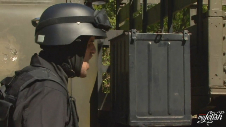 Слегка придурковатого вида, но очень решительная леди нарядилась в пародийного летчика самолета и притопала на военный полигон в поисках голодных до секса мужчин. Найдя часового спецназовца на дежурстве, она кокетливо спросила: "Куда бы нам с тобой вдвоем отойти, чтобы нас не спалили твои сослуживцы в отсутствии на рабочем месте?". Второй раз солдафону повторять не пришлось, и они быстренько перебрались за военный грузовик, подозрительно похожий на наш ЗИЛ, и начали грандиозные поебушки - срочник не отрывался от пизды так долго, сколько мог, пока не обкончал ее всю.