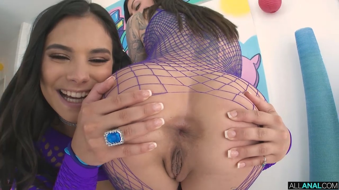 Даже если вы не особый любитель анального секса, то глядя на эти крепкие и упругие задницы тоже где-то в подсознании захотите им присунуть. Все потому, что недели в спортзале плюс фиолетовые колготки в сеточку делают вид на эти попки бесценным. Красотки знают это, и как бы дразнясь, начинают играться с анусами друг дружки, вылизывая их до кристальной чистоты. А вот и мужчина с толстым хуем, который только и грезит, чтобы по очереди уработать обеих подруг в очко, изредка доставая хер из жопы, чтобы бездействующая леди его обсосала, а затем выпила сперму из сраки.