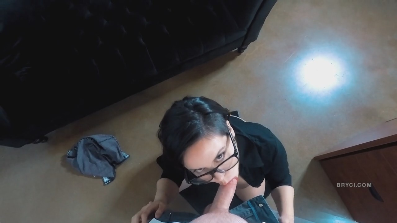 В теории снять офис для коворкинга - это арендовать помещение с компьютерами для того, чтобы как следует поработать с другими людьми. Но зачем заниматься такой ерундой, когда в этом же офисе можно поебаться? Сегодня в этом помещении тусит классная девчуля в очках и еще один ее коллега, который по приколу нацепил камеру а голову. Брюнетка тотчас же вырубила компьютер и попросила его заценить руками ее сиськи и жопу на камеру, после чего оформила ему бодрый минет, а затем, облокотившись на столе, отдалась ему раком. Правда, пришлось сперму с очков слизывать.