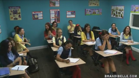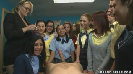 В США копов учат многому, чтобы они были готовы к различным ситуациям. Но в данной академии, кажись, программа обучения слегка пересекает рамки приличного, потому что сегодня женские классы будут обучать, как правильно сосать хуй. Не особо понятно, как это может пригодиться на службе - разве только чтобы получить повышение. Но в аудиторию специально запускают скромного парня, которого мигом облепляют девки, чтобы продемонстрировать свои навыки отсоса - особенно это будет весело на экзамене, где чувак, наверное, заработает себе стертый хуй.