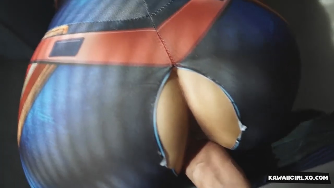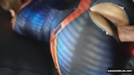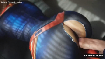 Было бы интересно посмотреть на женскую версию человека-паука, сложную действительность сокрытия супергероя за образом обыденной девушки, работающей продавщицей или в коллективе офиса. Придумывание отмазок, когда нужно срочно бежать спасать мир. Но пока что мы имеет только домашнюю порно версию сексапильной героини в обтягивающем костюме с разорванной частью возле задницы, чтобы партнер мог пристроиться сзади и присунуть член в писечку, находящейся под откровенно неплохой задницей. В финале стоящая раком самочка получила порцию спермы на аппетитную филейную часть.