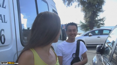 Пара друзей отправились в сторону пляжа, предполагая, что там будет больше легкодоступных девушек, которых можно снять за деньги и оттрахать вместе на камеру. Первые попытки тоже попали на запись и все они неудачные. Как только незнакомки видели камеру и куда клонится разговор, они тут же сбегали, отворачивая лица, сразу видно - реальные гражданки, а не купленная актриса. Наконец, ребятам удается найти то, что они искали. Это была сидящая в одиночестве на остановке англоговорящая красавица, выглядящая просто великолепно на фоне кирпичной стены. Она приняла несколько купюр, вложенные за майку и отправилась с новыми знакомыми искать место, где перепихнуться. Сперва троица занялась сексом на улице в парке, после чего переместились в недостроенный дом, трахаясь прямо на мешке с цементом.