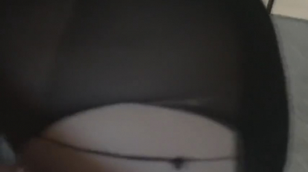 Стройненькая брюнетка не показывает своего лица, как и ее партнер, который прежде, чем вставить любимой, дал ей предварительно пососать, это дело парень любит. Девушка сидит на кровати спиной к камере, а на ее заднице через порванные колготки видны черные неплохие трусики. Их не будут снимать, в них попка стройняшки выглядит даже лучше. Первой позой стонущей с закрытым ртом девушки стала поза раком, после чего она залезла сверху на возбужденного партнера. Следующей, последней позой брюнетка залезла сверху, щекоча ствол краешком трусиков, отчего парнишка обкончался на свой живот.