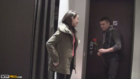 Купив предварительно всего один цветок и придя с ним на встречу с девушкой, парень не прогадал, она действительно растаяла и долгожданное свидание прошло как надо. Еще в подворотне стало понятно, что питерский пацанчик смог развести Изи, так друзья зовут героиню, на палочку. Пригласив подняться к себе, на пороге джентльмен предложил чай и кофе, но барышня отказалась, ей уже и самой хочется оказаться на хуе этого культурного до мозга костей парня. Подвешенный язык сыграл решающую роль и, буквально за десяток минут, чувачок уболтал пассию с неплохими ножками вступить в половой контакт у него на кухне.