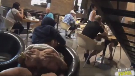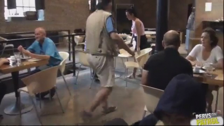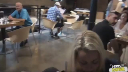 Обнаглевшие молодые люди трахаются в ресторане. Все пожилые и взрослые глядят на извращенцев, но никто не делает замечаний и не вызывает полицию, не обращается к персоналу с просьбой выгнать нахалов. Они с каждой секундой наглеют, сперва хоть как-то скрывали, а потом просто уже смеялись с реакции посетителей. Телочка без трусиков прыгает сверху, глядя наглыми глазами на всех, а ее голая задница мельтешит на члене, лишь изредка набрасывая юбочку для сокрытия соития перед новыми клиентами. Немец со спущенными штанами встал перед блондинкой и накончал ей на лицо, на этом ролик благополучно закончился.