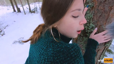 Еще на пути в лес за деревню девушка начала вести съемку из машины. Она показала аппетитные сиськи и милое личико, в попытке заинтересовать будущего зрителя, коих у пары становится больше с каждым днем, причем большая часть не соотечественники, а зарубежные поклонники, помогающие пожертвованиями и выкупом приватных видео. Девушке повезло меньше всего - ей пришлось снять куртку и почти раздеться, чтобы спутник имел доступ к телу. Адреналин, подскочивший в крови, не дал замерзнуть малышке и она быстро почувствовала себя в своей тарелке, оставшись погулять с обконченным личиком.