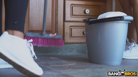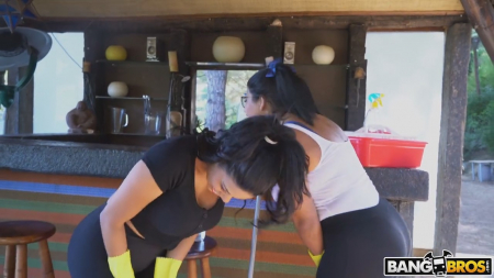 Состоятельный парнишка с включенной камерой сразу не понравился нанятым сестрам-домработницам, приехавшим со своими ведрами, тряпками и моющими средствами убирать весь дом. Но как только они увидел несколько смятых купюр, то значительно повеселели. Но просто так бабки отдавать никто не планирует, им пришлось раздеться и начать уборку в голом виде. У сестер как на подбор здоровые сиськи и не менее крупные булки, сотрясающиеся при ходьбе. Еще пару сотен баксов завалялось, хозяин их решил потратить на двух дешевых латиноамериканских шлюх, демпингующих из-за большой конкуренции.