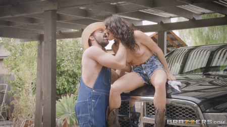 Девушка в коротеньких джинсовых шортиках залезла на стремянку чтобы сорвать яблочко для себя. Одно неловкое движение и она полетела бы вниз что-нибудь сломав, но повезло, так как мимо проходил крепкий сосед, успевший поймать ее за задницу. Позже они разговорились и джентльмен оказался достоин чтобы дать ему писечку не только за спасение, но и за отличную беседу, во время которой мужик в робе показал огромную машину. Подвешенный язык и накаченное тело нового знакомого свели с ума слабую на передок чувиху, отдавшуюся под палящим солнцем (в попку тоже), от него не спастись соломенной шляпой.