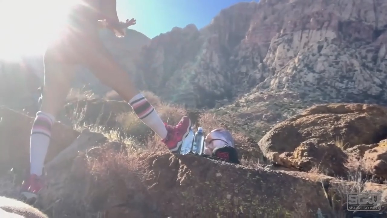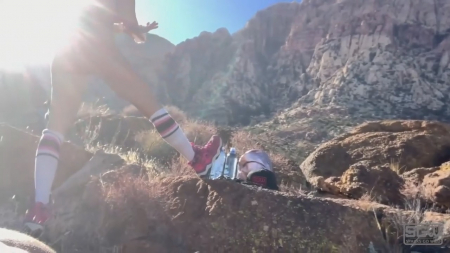 Совсем недавно закончились дожди в пустыне и наступила засуха, губительная для многих животных и растений. Стоило пройти всего пару километров, колючки успели проткнуть подошву кроссовок. Хорошо, что любовники не собирались мучать долго собаку и сделали привал. Белобрысая станцевала танец со съемом обтягивающей потной одежды напротив яркого солнца под зажигательную электронную музыку. Великий путешественник всегда готова насадить на кукан "запеченную курицу", кем является его подруга. Собака бегает в недоумении вокруг не понимая, какого хера ее подкаченный хозяин обращает внимание только на сисястую блондинку, которой нужно только сделать фотки и селфи, вместо подачи вкусной косточки.
