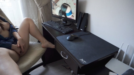 Минет - процесс возбуждающий далеко не только мужчин, многим представительницам женского пола нравится сосать, смотреть порно, в котором делают минетик, особенно когда член там больше среднего. Неназванная любопытная домохозяйка наткнулась на ролик, где девочка с завязанными глазами глубоко берет в ротик и так сильно возбудилась, что решение помастурбировать на видео созрела молниеносно, для этого кресло удобно - ноги спокойно раздвигаются в стороны. К тому же онанистка записала и себя, чтобы отправить своему мужчине, которому нравится пошлые наклонности любимой. 5 минуточек понадобилось чтобы испытать оргазм, представляя себя на месте героини из включенной на компьютере записи.