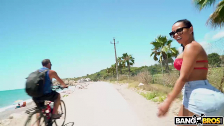 В трусах и нижнем белье свободолюбивая телка гуляет по пляжу и улицам, демонстрируя огромную задницу. Латинку уже заждались возле мощного трака, предназначенного для перевозки грузов по стране. Завидев издалека приближающуюся красавицу, актер открыл створку фургона. Ребята забрались туда и горячая брюнетка стала выполнять работу, начав с минета. Как бы ни старалась девушка, полностью длинный член проглотить не удалось, только лишь пощекотала глотку с характерными гортанными звуками. Парень лег на спину в грязном грузовике, наслаждаясь видом очень круглой аппетитной задницы, ведь девушка в позе наездницы спиной к партнеру. Дальше разовые любовники встали возле металлической стенки большегруза, а потом вновь вернулись на пол, где все закончилось спермой в ротик шлюхи.