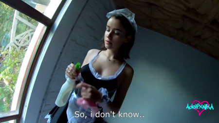 Долгожданная уборочка ждет слегка засранный дом. Пришла довольно симпатичная девушка, вежливая, работящая и, главное, в сексуальном костюме. Она сразу понравилась клиенту и тот не стал дожидаться конца клининговых услуг, а сразу предложил отполировать его флейту. Гостья сразу поняла о какой флейте идет речь, из-за призвания она не смогла отказать в чистке пениса глубоким ротиком, а потом половым органом, таким приятным и достойным внимания. Скакала телочка весьма неплохо, пока сперма внутри не разлучила бьющиеся в экстазе тела. Ну теперь пора и протереть от пыли остальное залежавшееся.