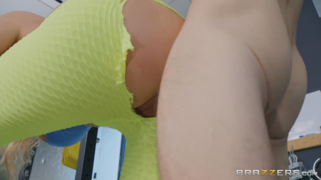 Взрослая дама занимается спортом в собственном спортзале, а по ее дому бродит друган сына, который зашел навестить товарища, но по телефону узнал, что его нет дома и придет не скоро. Бродя по комнатам, он вошел в ту самую, где тренируется мамашка. Блондинка попыталась поздороваться с молодым человеком, но он не обратил внимания, уставившись на огромные сиськи, которые будто специально трясутся при каждом шаге для него. Спустив штаны, засранец начал гонять шкурку не сводя глаз с аппетитных форм, а когда замаячила задница, то уже совсем обезумел и порвал женщине штаны, вставив пиструн промеж половых губ, выдолбив по всему залу в вагинальную дыру и между бидонов.