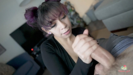 От мужской скуки отлично спасает качественный минет опытной девушки. Одна такая предложила взять камеру и записать каждый звук внутри ротика, как слюна движется по головке, как скрипит член при его дрочке. Кто ж от такого откажется?! У парня хер дымится от работящей милочки, чьи уста мутят четкий блоуджоб. Обычно она выкладывает записи со своей мастурбацией, реже сексом, а минет крупным планом и вовсе редкость. Последние несколько минут пришлись практически онли на гонение шкурки вдоль ствола, отчего родной обкончался прямо на выгнутый язычок словно ложка. Семя было незамедлительно проглочено для пользы организма.