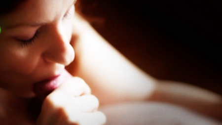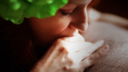 Рыжеволосая телка с большим зеленым бантом стоит перед мужчиной на коленях и страстно сосет его твердый член. Опытная девушка знает как удовлетворить мужчину быстро и так, чтобы он запомнил этот секс надолго.
