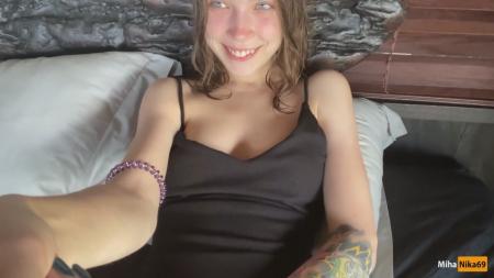 Русская девушка со своим молодым человеком приехала на курорт, где сняли домик максимально близко к пляжу. При этом они не учли, что большие окна с видом на море не дадут нормально потрахаться, ведь совсем рядом постоянно шныряют местные. То кто-нибудь проедет мимо, то рабочие трутся возле окна - сплошное палево. Заняться любовью или хотя бы помастурбировать очень хочется, потому пара пошла на риск, постоянно выглядывая нет ли кого. К счастью, малышка все-таки смогла кончить, не позволив больше в себя засунуть член и еще немного пошликала для послевкусия.