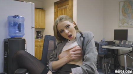 Уже вечер и все сотрудники офиса разъехались по домам. Осталась только одна девушка, решившая немного помастурбировать на работе. Для разнообразия она включила вебкамеру, выведя изображение с собой на весь экран. Тут выясняется, что здесь красавица не одна и коллега, знавший об этом, позвонил по видеосвязи, увидев как приятельница шалит. Парень знатно охренел, но не растерялся, тайком пробравшись подглядывать за милой особой. Когда он вышел из-за укрытия, телочка сперва прикрылась, а потом наоборот, раздвинула ножки, приглашая его войти. За помощь чувак получил словесные благодарности.