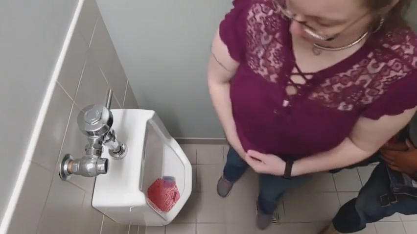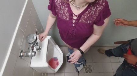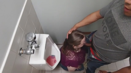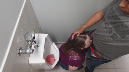 Пошлая парочка, состоящая из пышной дамы в очках и ее загорелого приятеля, нашли малопосещаемый толкан, куда вечером практически никто не заходит. С начала записи толстуха сидит наготове рядом с мужским писсуаром и, когда молодой человек подходит со спущенными штанами, сразу берет в рот. Сделав член твердым она поворачивается большим задом к другу, а он, естественно, начинает ее трахать стоя. Всего минуту ему хватило пошоркаться о пухлые губки пизды чтобы кончить подруге внутрь. Просунув пальцы в отверстие, чувак соскреб свое еще теплое семя, дав его съесть и без того полной спутнице.