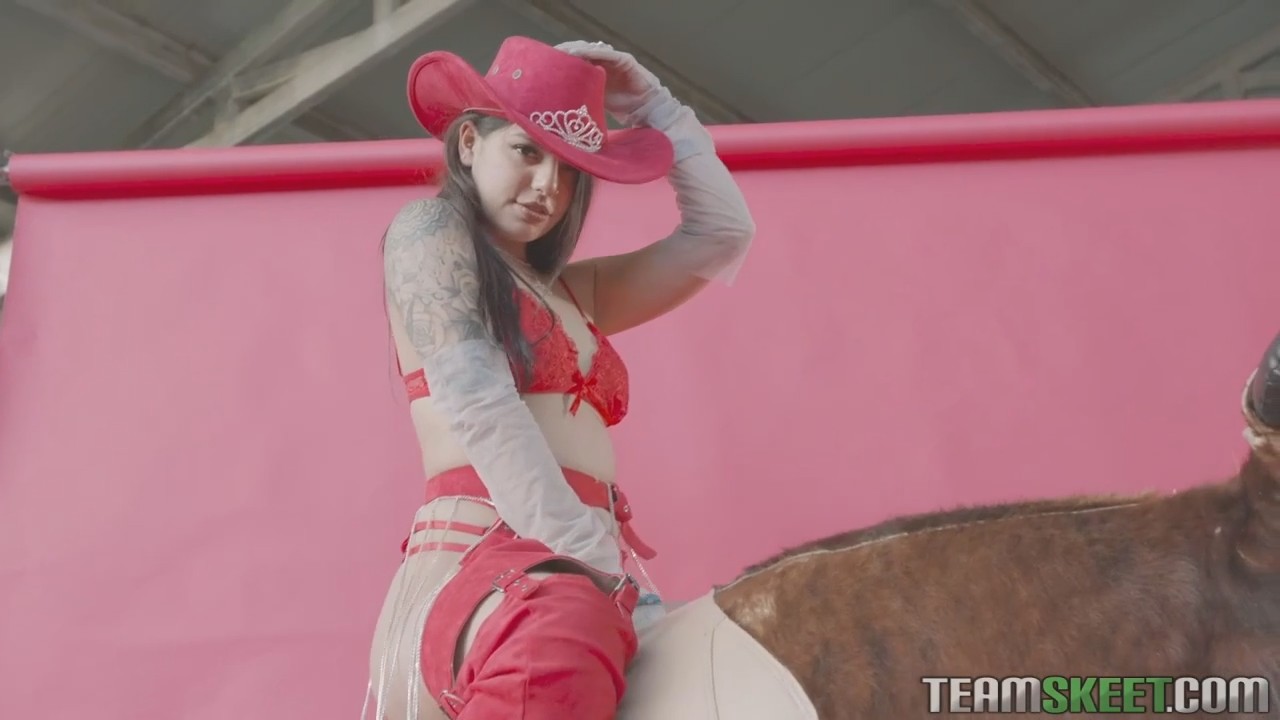 Соло начало демонстрирует нам симпатичную бразильянку, скачущую на механическом быке в вызывающем для настоящего животного яростные ощущения из-за цвета секси костюма с выделенной задницей над высокими красными сапогами. Вдоволь натренировавшись, миловидная брюнеточка пошла на свидание с кавалером, который прохлаждался под навесом - ему нужно сделать еще много работы, сзади лежат материалы, но ему более интересен секс с местной красавицей. Они вместе устроили свои ковбойские развлечения на большой бетонной плите. Ее скоро уберут, а если бы дело проходило у нас, то она так бы стояла с десяток лет.
