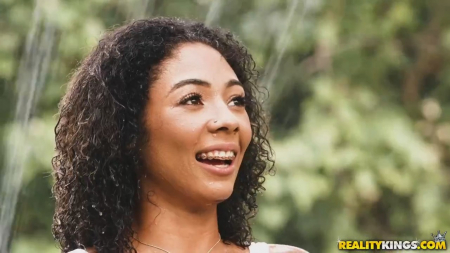 Сосед разбирался с поливочной техникой, а сбоку за ним подглядывала через забор негритяночка, приспустившая короткие шортики и ласкающая киску глядя на здорового парня. Они мило побеседовали, но лысый дядя вскоре ушел по своим делам. Тогда кучерявая смуглянка перебросила мячик для регби на его территорию и встала намокнуть от разбрызгивающейся воды. Она соврала, будто брат закинул сюда мяч, а полотенец не нужен, ибо можно снять футболку. Знакомый опешил, но, когда узнал о совершеннолетии, повелся на соблазнение, трахнув чернокожую на траве, а потом у себя дома.