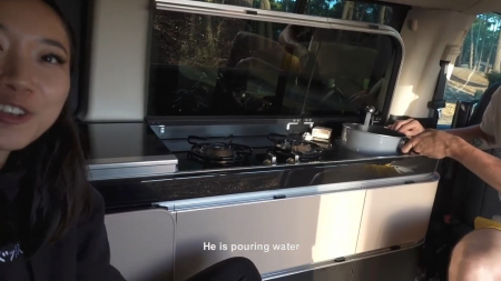 Авторы сразу предупреждают, что если вам не интересны их разговоры и прочие приключения с ночевкой, то стоит перематывать на 11:00 видео. Понаехавшая французская азиатка вместе с бойфрендом по имени Ван приехали отдохнуть на живописной природе, девушка ни разу не останавливалась в кемпинге. И вот, в конце одиннадцатой минуты происходит взрослый экшен - парочка забралась в лес, не обязательно заходить далеко, тут ни души. Азиатка села худой задницей на поваленное дерево, парень ей отлизал, после сразу поставил в платьишке раком и выебал, спустив немного малафьи внутрь. Вот и все.