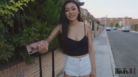 Гуляя по улице, юнец заметил через дорогу реально разозленную девушку, по разрезу глаз явно не местную. Татуированная мелкашка рассказала как договорилась с бойфрендом, что он заберет ее здесь, но сам перестал брать трубку и теперь она не понимает как добраться до вокзала с вещами. Испанцы очень любят болтать, потому молодой человек решил составить компанию японке, проводив ее до нужного места. Время у худенькой азиатки еще есть - неожиданно прозвучало предложение посмотреть что находится за зданием вокзала, где новая знакомая щедро одарила хуястого паренька своим минетом и вагинальной дырочкой.