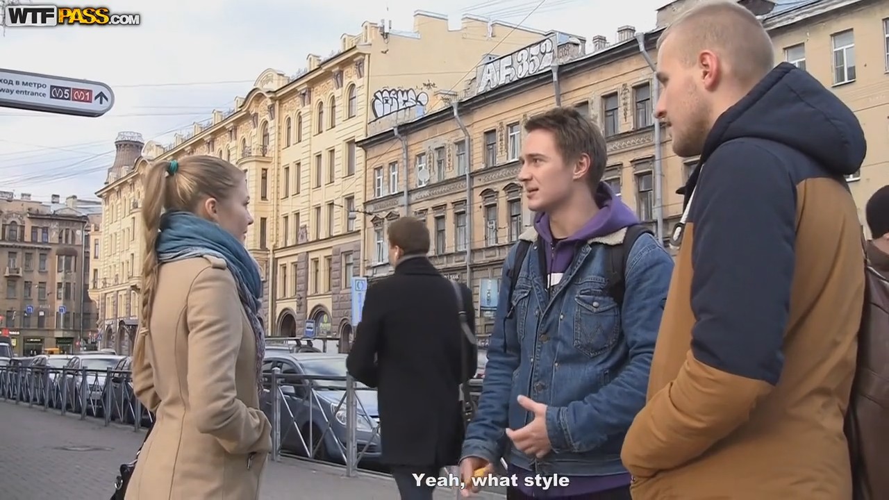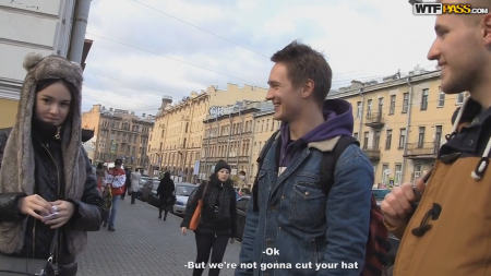 Если вы думаете, что нет таких девчонок, которые соглашаются сразу пойти с неизвестными парнями тусить с продолжением, то вы глубоко ошибаетесь, хоть и здешний вариант специально подготовленный к съемкам. Было несколько неплохих, симпатичных вариантов, но обычно этих приятелей скромно отвергают. По плану зоркий оператор следит со стороны на товарищей, которые подлетают с непристойными предложениями. Одна брюнетка по имени Лида сперва согласилась посидеть в кафе недолго, после чего компания пошла в сауну. Слыша пошлые шутки, новая знакомая уже была готова отдаться двоим сразу.