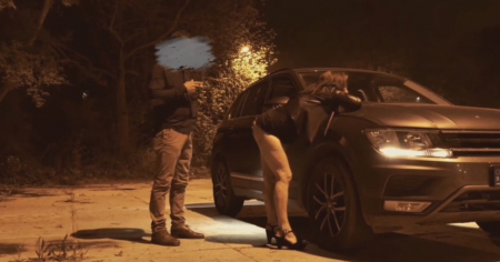 Куколд дрочит в машине пока рядом его жену ебут за проезд