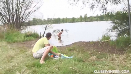 Главная попка деревни пришла искупнуться, бросив одежду на берегу. Еще издалека голую девушку заметил случайный прохожий, гулявший по сельским дорогам. Он тихонько подкрался прячась за деревьями, схватил шмотки и демонстративно стал с ними убегать от прикрывающей сисечки и писечку хозяйки вещей. Он намного выше и сильнее, рядом больше никого нет, чтобы попросить помощи, потому фигуристая селяночка исполняла простенькие желания незнакомца: поцеловать хорошенько, дать потрогать пирожок. От этого девка сама намокла и они вместе ушли на прежнее место перепихнуться в поле. Не зря несколькими минутами ранее парень дал пачку новых салфеток - ими он вытер живот, попрощавшись до следующей встречи.