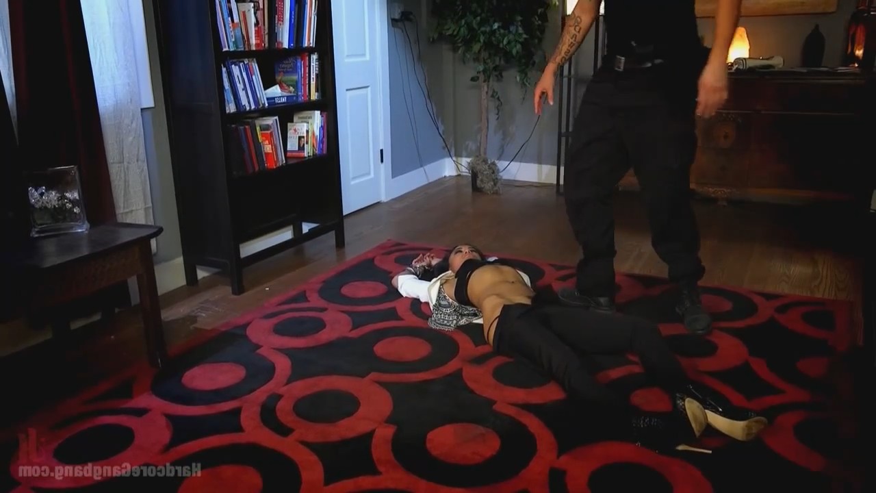 В дом врывается незваный гость в балаклаве, заставив хозяйку уснуть от пропитанной средством тряпочки. Насильник начинает стягивать одежду с сексапильной азиатки в наручниках и все, дубль снят. Лежащая на полу актриса просит трахнуть ее всей командой в реальности, потому что сцена очень возбудила. Что ж, просьба легко выполнима. Парни жестко дали отсосать каждый член, после чего оттрахали метиску в двойном проникновении, отметелив как проколотую пизду, так и разработанное очко на кожаном диване, заставив сильно вспотеть. Каждый сам выбрал куда разнообразно кончить. Женщина рассказала в интервью о том, что пришла на генг-бенг не из-за денег больше, а из-за того, что просто нравится когда сексуальное внимание идет сразу от множества мужчин.