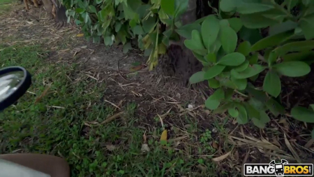 Оператор вышел посмотреть чем занимается актриса, стоящая раком на выпрямленных ногах. Латиночка сказала, что ищет муравьев с лупой, но пока ничего не удалось увидеть. Зато удалось многое разглядеть когда пришел друг камерамэна - высокий подкаченный чернокожий парень. Поглядев в увеличительное стекло на его пах, мелкая потаскушка сразу поняла, что там хранится нечто очень длинное, дающее девушкам кайфовать и делать больно. Малышке удалось уговорить достать его пососать, а потом оба отправились трахаться в дом, так как на улице слишком жарко. Жилистый сникерс весь стал скользким от естественных выделений девушки и слюны.
