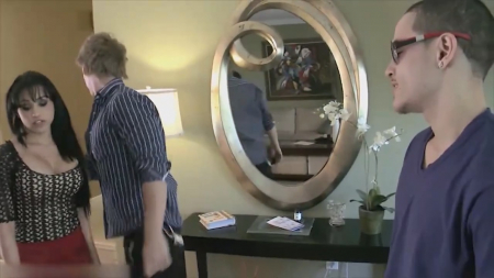 Заебавший до безумия бойфренд вернулся с каким-то приятелем, которого девушка до этого момента не видела. Она оставила их вдвоем, сама ушла помыться под утренним душем. В ванную заглянул гость, извинившийся за свой наглый визит сюда, он просто хотел сделать свои дела и уйти, но латинка его оставила, открыв тело под шторкой. Шикарная девчонка, не правда ли?! А еще очень шлюшливая, раз готова отдаться первому встречному. Благо безработный бойфренд куда-то снова пропал и дал возможность полноценной измены с таким же латиносом, как и сама потаскуха.