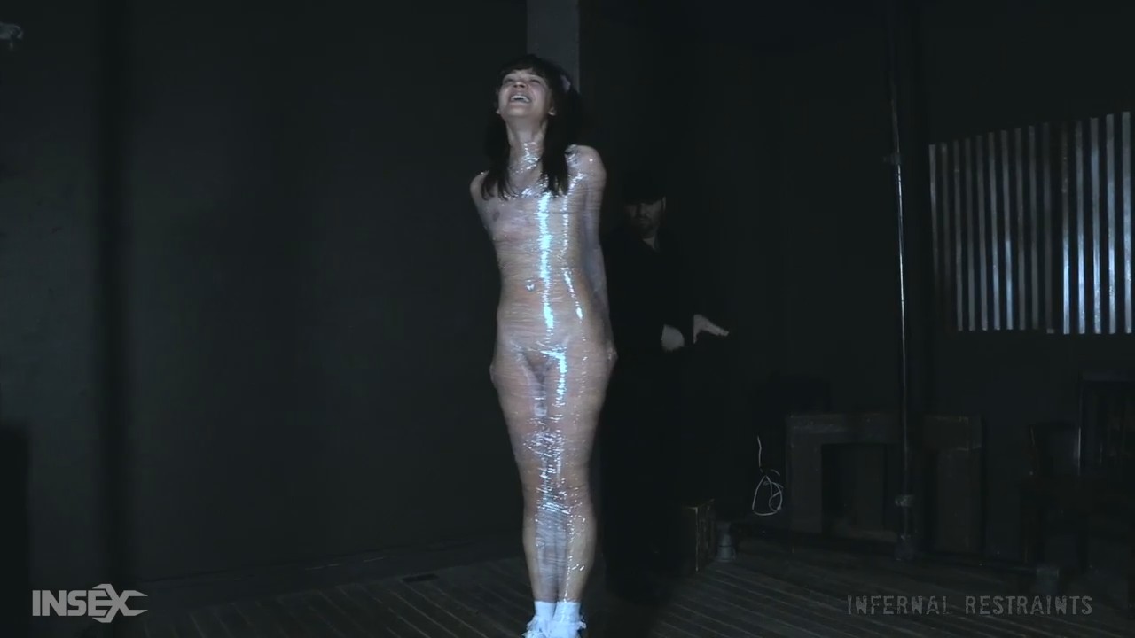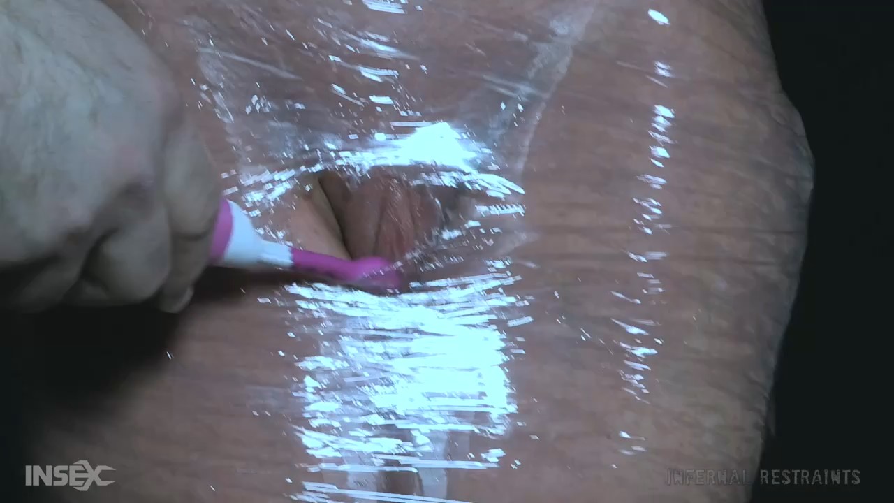 Очнувшись лежащей на полу, девушка возраста студентки не понимала почему ее руки связаны, во рту кляп, а сама она находится в каком-то темном подвале. Совсем недавно она просто гуляла с подружками вечером по улице, а сейчас какой-то псих ходит вокруг с инструментами. Истекающую слюной через ротовую затычку подвесили на цепи к потолку, отхлестали плетью и прижали к клитору вибратор через трусики. После этого бедняжку поставили рачком, приковав к деревянной конструкции и засунув в задницу черный предмет. Слезы сами наворачиваются на глазах, но бесстрашная жертва сексуального маньяка перетерпела и это издевательство, но когда тело обмотали пленкой, продолжая сексуальные пытки вибраторами, стало действительно страшно, ведь на голову надели пакет.