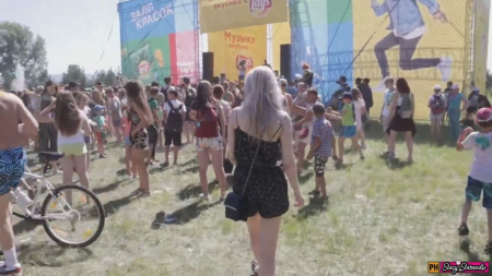 Русская парочка пришла на городской праздник, думая, будто там будет что-то интересное, какие-то выступления звезд и прочее, но это как всегда тухлое зрелище для пенсионеров и мамочек с детишками. Блондинка подергала летней попкой под ритм и предложила парню отлучиться подальше в задворки к лесу, чтобы она его там осчастливила минетиком, иначе оба от скуки подохнут. Блядинка с большим опытом, потому умеет играться на камеру спермой, то выталкивая ее на губки, то засасывая обратно, а вот глотать все равно не стала.