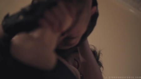 Сидящий у радиатора отопления забитый мужичонка заслужил из нежного только поцелуй от молодой госпожи. Сразу после она жестко отхлестала мужика плеткой, поставив стоять на колени с опущенной вниз головой. После каждого удара он постанывает, но тучи сгущаются еще сильнее, ведь на поясе девки появляется страпон, который он сперва отсосал, а потом получил в задницу в боковой позиции. Снимает это любовник, его очередь не показали, но он явно шарит в этой теме. Шлюшку не выебали, брюнетка лишь отсосала, надрочив на высунутый наружу язычок рукой в перчатке с обрезанными пальцами.