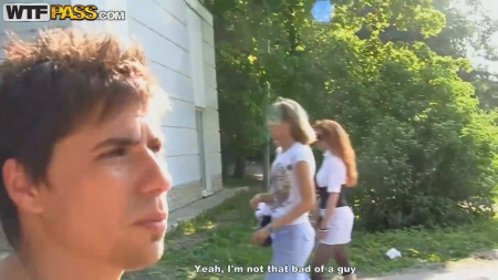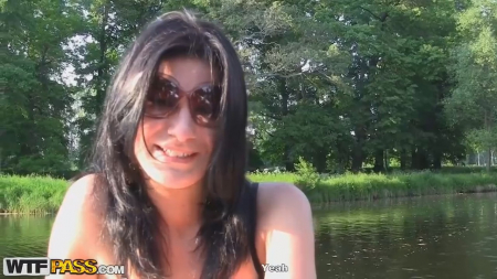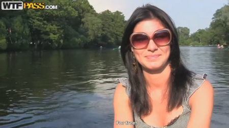 Двое друзей, один из которых прихватил на прогулку камеру, пошли по улицам в поисках доступных девиц. Таких бесспорно много, но первые полчаса времени потрачено зазря, хотя попались интересные экземпляры возле Ашана. В итоге парни дошли до пруда, где какая-то брюнетка сидела на траве и общалась в соц.сетях со своим молодым человеком. Ей было интересно пообщаться также с незнакомцами и вместе пошариться вокруг пруда. Для начала падший ангел показала сиськи, а потом уже дело дошло до укромного секса посреди деревьев парка, причем драл в пизду ее только мулат, но сосала у обоих и кончили в рот тоже оба.