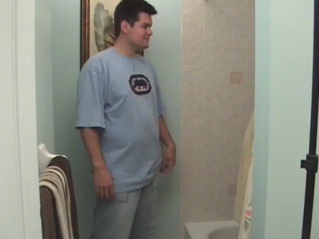 Прихватив с собой камеру, парень пошел попроведовать подружку, надолго застрявшую в душе. Нет, она в этот раз не мастурбирует, но готова помочь расслабиться любимому, с особой любовью и нежностью, только пока об этом она не знает. Удалец с лишним весом, когда та вышла из-под струи воды, стал расстегивать штаны, а покорная девка села на краешек ванны и взялась посасывать маленького жирафика, который выглядывает из кустов волос. После минета пошла окончательная дрочка, девочка прижимает головку к бедру бойфренда, а потом выдрачивает его писюн прямо в горлышко, отчего его хозяйка сморщилась.