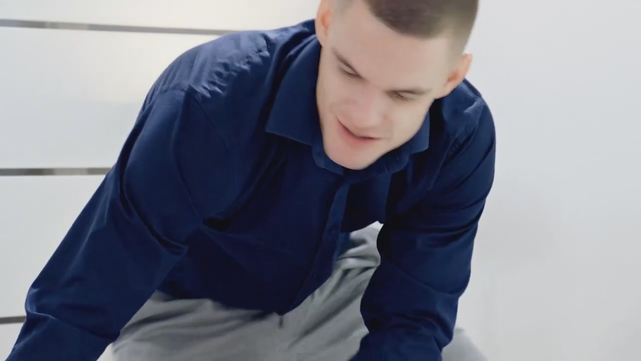 Начитанный молодой человек обожает белые комнаты. Они кажутся больше и светлее, особенно когда на кровати лежит собственная рабыня, скованная по рукам и ногам мягкими наручниками, а глаза ее завязаны тканью. Девушке остается только ожидать когда хозяин соизволит обратить на нее внимание и это происходит, ведь сложно долго находиться рядом с такими ножками, грудью, попкой, все это твое и такое доступное. Любовник далеко не эгоист, он долгое время проводит рядом с киской, подрачивая ее как пальцами, так и вибратором с секс-игрушкой и только после этого дает пососать и начинает трахать малышку, не разрешая ей смотреть. Остается только подглядывать по возможности.