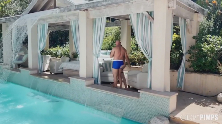 Сказочная жизнь молодой Кензи Энн сопровождается купанием в теплом бассейне на территории большого дома. А владеет этим добром держащий себя в форме взрослый мужчина, который пришел навестить подругу с маской для плавания на голове во время ее предварительных ласк самой себя в воде. Прокуренная чикуля нападает ротиком на его величественный член, а потом они со страстью трахаются под навесом среди нескольких диванов, предназначенных для множества гостей. Такого мужика не стыдно показать друзьям - он в отличной физической форме, а его член всегда стоит на пирсингованные сиськи когда это нужно. Ну и телочка легко высасывает все соки, дабы не было желания привести еще более опытную содержанку.