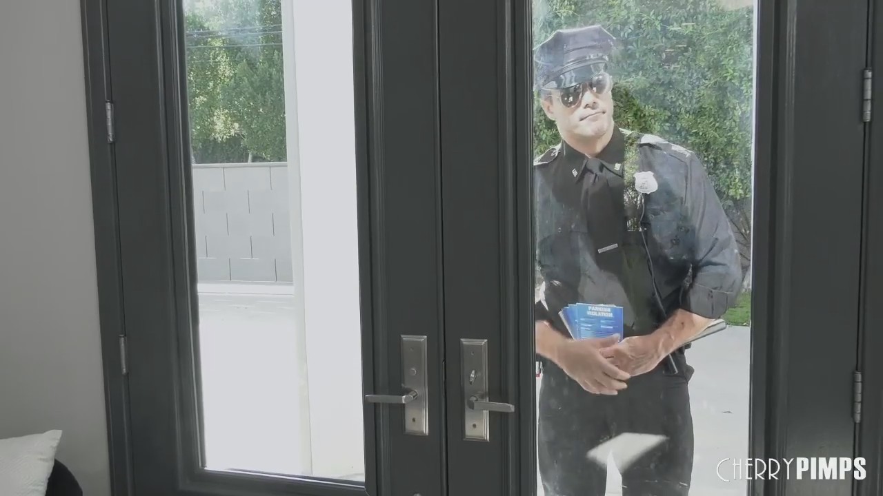 Сексапильная блондинка красовалась своим шикарным телом когда в дверь постучал незнакомец в полицейской форме. В руках он держал целую кучу штрафов за неправильную парковку. Хозяйка поверить не могла глазам, ведь она старается водить аккуратно, никому не мешать и вообще вся такая умничка, но страж порядка был неумолим. Он прямо на месте стал производить телесный досмотр девушки, лапая во всех причинных местах и постучав дубинкой той по киске. Наверное, хотел услышать хлюпанья, ведь ему пора присунуть нарушительнице в рот и ту самую киску, чтобы замять дело. В конце мужчина признается, что это подруги подослали "полицейского" как эротический сюрприз.