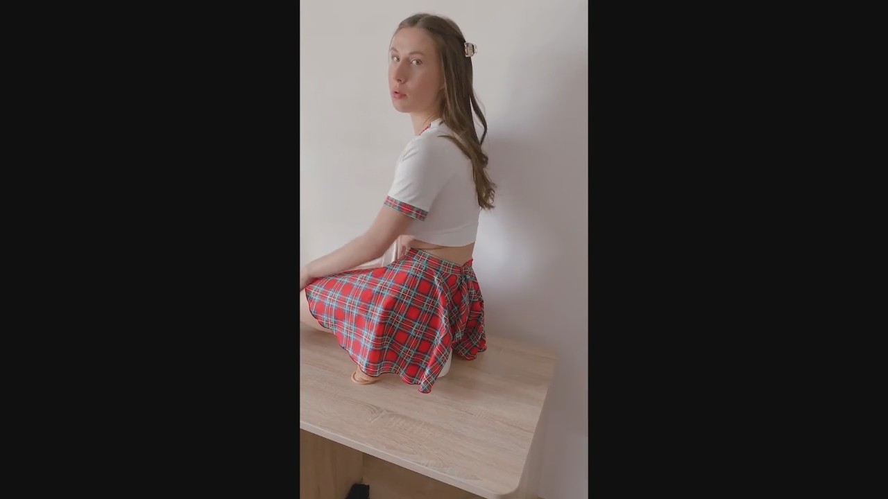 Услышав стоны, молодой человек включил запись на телефоне и пошел проверить чем может таким заниматься его девушка. Как оказалось, она пришла из школы думая будто дома одна и решила немного попрыгать на секретном дилдо, о котором парень не знал. Когда девчонка услышала его, то стала отнекиваться, будто тут стена грязная и нужно протереть, только почему из ее пизды торчит самотык и зачем она в юбочке залезла на рабочий стол не пояснила, но от помощи отказываться не стала, поэтому через несколько секунд ненакрашенную трахали на столе, пока она посасывала резиновый пенис.
