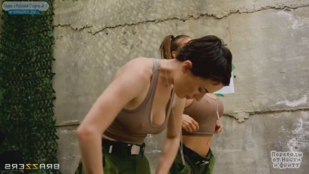 Когда командир увидел двух подопечных, отлынивающих с телефоном от тренировок, то был в ярости - заставил таскать туда-сюда неимоверно тяжелые коробки, делать изнурительные упражнения. От жары можно просто сойти с ума. Когда это безумие закончилось, военные подруги пошли отдыхать в казарму. Они очень грязные и потные, что сильно возбудило одну из них, предложившую немного развлечься хотя бы лизанием сосков. Вторая переживала, что тот козел зайдет и все испортит, но удалось провести превосходные 20 минут оральной лесбийской жизни ножницами, в 69 позе, пока не подняли и не пришлось срочно одеваться.