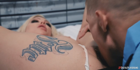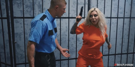 Голодная до секса татуированная арестантка кинула подушкой в первый ярус - там спала сокамерница и громко храпела. У девочек случилась потасовка, во время которой блондинка придумала план как можно отсюда выбраться. Для этого нужно снова начать мастурбировать, избавившись от "коллеги" по шконке, а когда вновь придет охранник, соблазнить его на секс. Сперва тот давал в рот и трахал через клетку, но вошел внутрь, потеряв всякую бдительность, из-за чего его подопечная смогла выхватить пистолет и заставить отвезти ее на машине на безопасное от кичи расстояние.