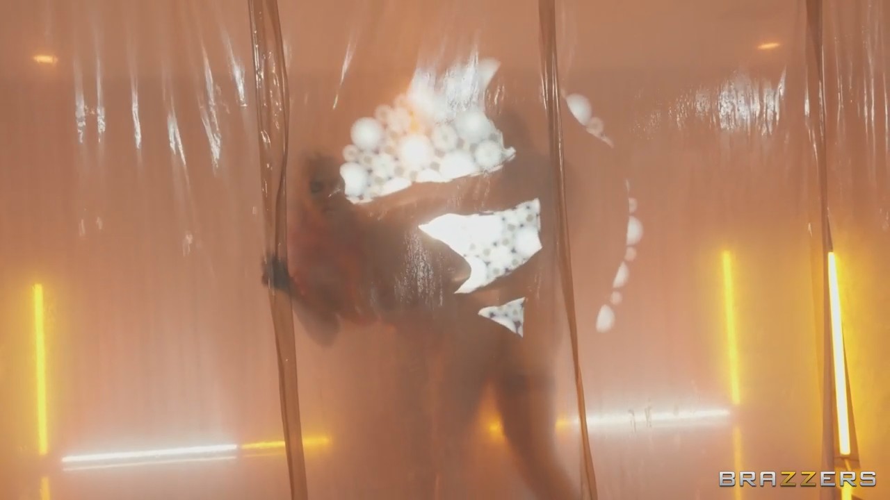 Будто свидание инопланетянки и землянина происходит встреча белокурой милфы и ее любовника за целлофановой ширмой. Там же, почти невидимо, начинается их половой акт, после чего парень обходит с другой стороны одну из полупрозрачных полосок, пытаясь дать в рот через "пакет". Ничего из этого не выходит, потому вскоре приходится разорвать мешающий целлофан, чтобы шлюха насладилась вкусом члена, только что побывавшего в ее влагалище, а потом и в попке. У пары есть еще много времени, чтобы получить кайф, закончившийся обильным выделением спермы внутрь вульвы и на половые губы нимфоманки с мужиковатым голосом.
