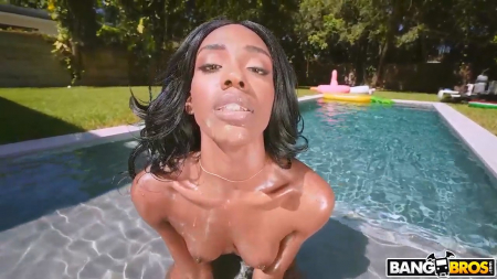Такой прекрасный день не хочется прерывать, а хочется еще поплавать в прекрасном бассейне под солнышком и ни черта не делать. Но жизнь иногда не так благосклонна к давалкам, поэтому вскоре появляется белокожий подкаченный взрослый мужчина, поливает ее худенькую попочку маслом и начинает теребить руками пилотку. Становится уже намного веселее, негритяночка намокает и отправляется в кроватку с опытным партнером, находящуюся внутри дома. Самец умеет ебать достойно, за это он может испачкать шоколадное личико своей малафьей и отправить дальше нежиться в водичке свою одноразовую пассию.