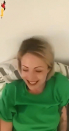 Любовник дрочил свой длинный член перед красивой девушкой, которая лежала рядом на кровати и тоже теребила фасолинку в футболке. Через пару секунд от начала видео он говорит "иди сюда", чтобы парень дал ей в рот, продолжая снимать на мобильник. Все это время россиянка нежно постанывая мастурбировала. Прямо перед самым оргазмом в рот симпатяги чувак просит передать привет мужу, шлюшка вторит "привет любимый" и показывает семя любовничка на языке.