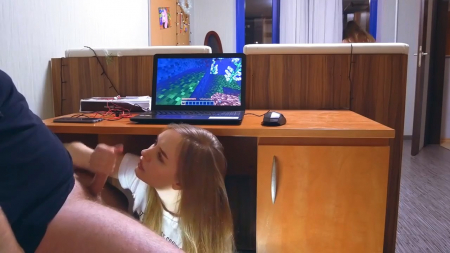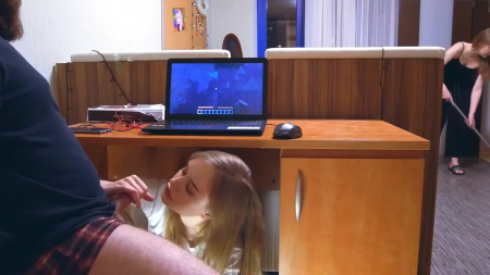 Парень снова сел играть на ноутбуке в Майнкрафт, к нему по привычке под стол залезла симпатичная сестра, которой очень нравится его отвлекать от процесса минетом. Тот и не против таких фетишей особо! Но побеспокоила мать, являющаяся той же актрисой, что и под столом, начавшая убирать комнату и отчитывать сына за то, что он игроманствует в свои дебильные игры. Она даже не думала подойти поближе и спалить двух инцестников на горячем, поэтому хуесоска не сильно беспокоилась и продолжала сосать, помогая бородатому брату кончить от дрочки рукой.