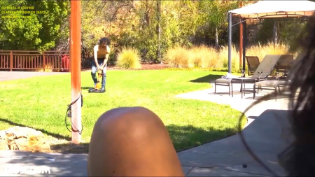 Парнишка наведался к своей соседке через забор поинтересоваться как у нее дела. А дела так себе, так как ей с трудом приходится справляться с сорняками, выросшими на газоне. Пока он куда-то бегал, она сама немного поработала газонокосилкой, постепенно раздеваясь от жары. А когда мальчуган вернулся, вообще начала мастурбировать при нем обнаженной прямо на улице. Так как с деньгами сейчас туго, сексапильная зрелая красотка предложила прикоснуться к ее вагине и, если тот ничего не расскажет родителям, то прямо сейчас приглашает его в дом для интересного отблагодарения. Туго с деньгами, но не туго между ног!