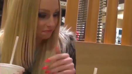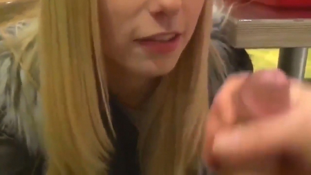 Симпатичная минетчица при включении записи уже почти довела своего возлюбленного до оргазма. Она немножко совсем взяла у него в ротик, подрочив рукой, после чего отдала инициативу ему самому, чтобы тот надрочил чуть-чуть спермы ей на язычок и в ротик. Действие происходит в известном во всем мире Макдональдсе, в котором всегда куча посетителей, тяжело спрятаться. Немка взяла стаканчик с колой и перебила соленый вкус сладким напитком.